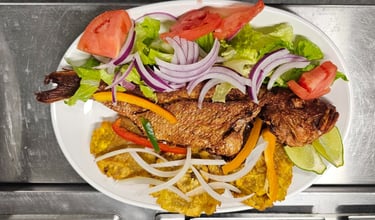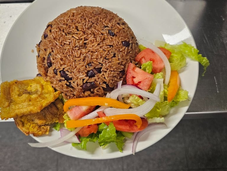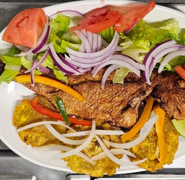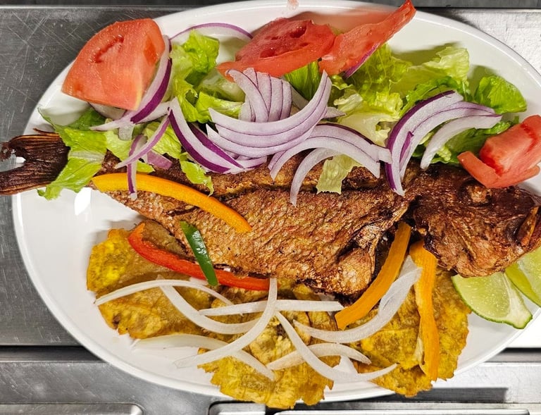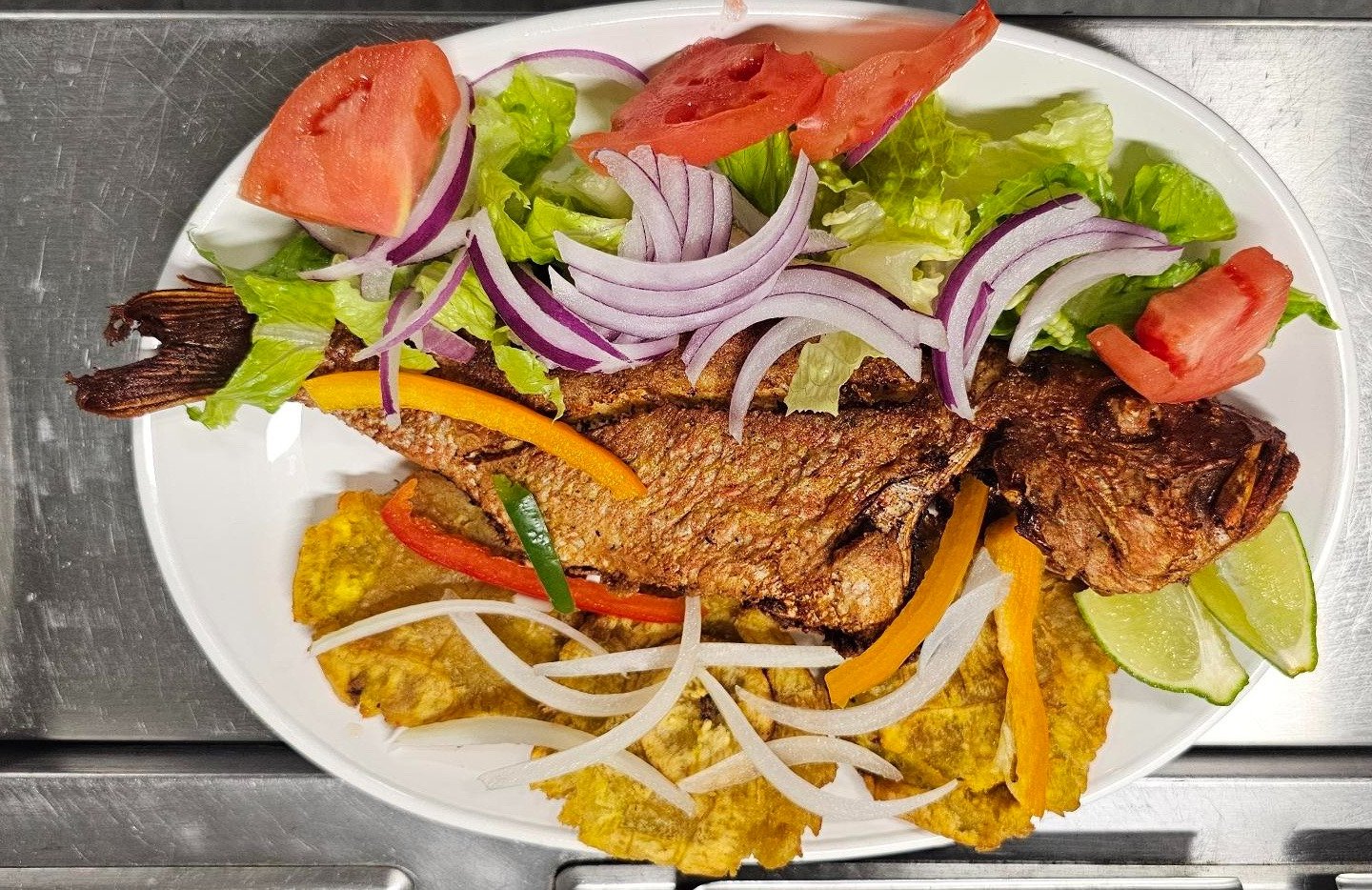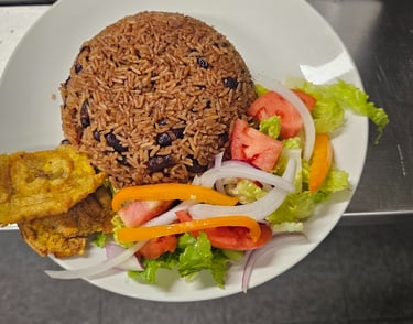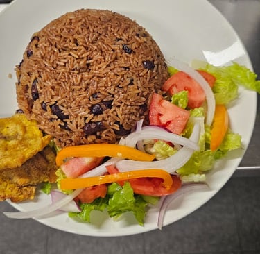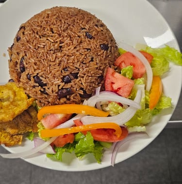 *All entrees served with one choice of rice, fried plantain, pikliz ( pickle cabbage relish) and side salad.