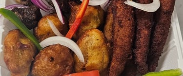 Kabrit (goat) Chunks of HALAL goat meat marinated and seasoned with a blend of fresh creole herbs and spices