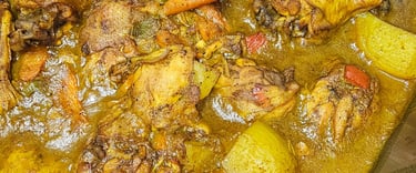Poulet (Chicken) Drumsticks Crip and juicy fried or stewed chicken prepared in special creole herbs and seasoning