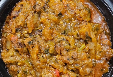 Legumes VEGAN- A delicious blend of mashed vegetables (cabbage, chayote squash, eggplant, and spinach marinated in savory spices.