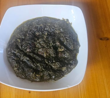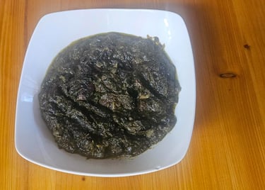 Lalo (seasoned dark leafy jute leaves with tender beef)