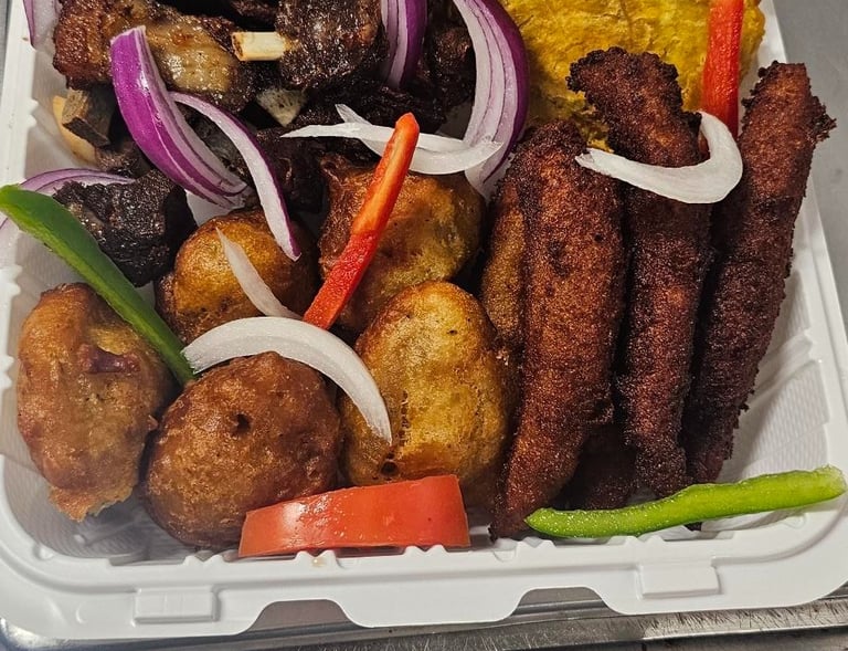 All fritay serve with: Accra (malanga), Marinade, Bannan Peze